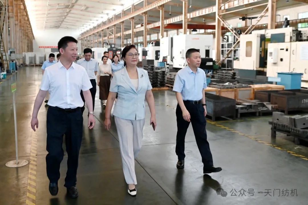 王玲主任一行深入天門紡機生產車間,考察企業(yè)運行情況。沈方勇董事長向王玲主任重點介紹了近幾年開展“智慧工廠”建設、推進數字化轉型和智能化改造的總體思路及工作進度。