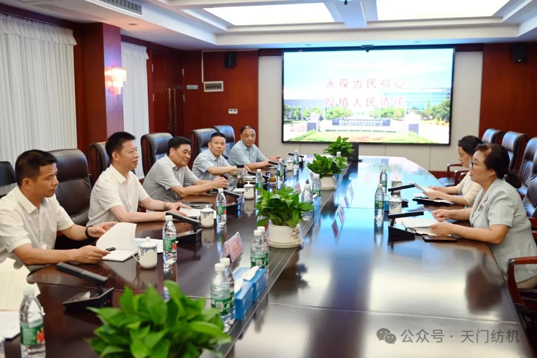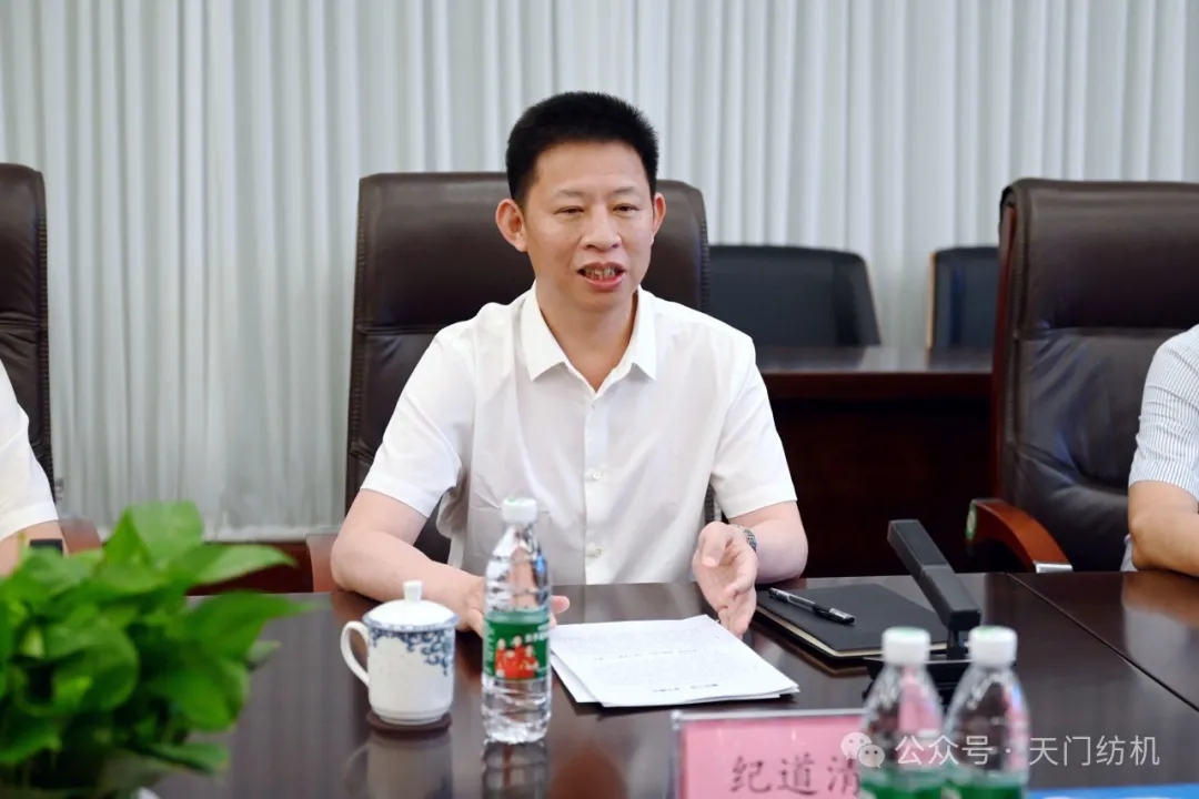 2024年8月27日,湖北省十三屆人大常委會黨組書記、副主任、十四屆全國人大代表王玲攜同十三、十四屆全國人大代表李霞,在天門市委書記、市人大常委會主任紀道清 ,市人大常委會黨組書記、副主任董清平,市委常委、秘書長高文博的陪同下調研了天門紡機及天門服裝電商產業(yè)園,十三屆全國人大代表、天門紡機董事長沈方勇全程陪同調研。