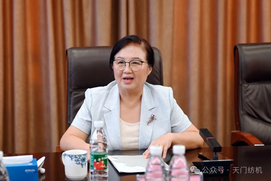 王玲主任聽完匯報后,對天門市委、政府強烈的責任擔當、創(chuàng)新的理念思維、果敢的行動措施以及若干工作指標在全省爭先競位的優(yōu)異表現(xiàn)給予了充分肯定和贊賞,并就如何進一步做大做強服裝電商產業(yè)等問題,提出了“擴大全球視野、強化平臺建設、提高品牌效應、優(yōu)化協(xié)作機制、整合社會資源”等方面的意見和建議。王玲主任在肯定天門紡機面對機遇挑戰(zhàn)取得良好經營業(yè)績的同時,對沈方勇董事長給予了很高的評價。她強調,沈方勇同志身為十三屆全國人大代表和中國紡機協(xié)會副會長,有很強的社會責任感和民族工業(yè)情懷,有不斷創(chuàng)新的發(fā)展理念與思維,有優(yōu)秀的個人品質和意志力。他幾十年如一日心無旁騖,堅守實業(yè),堅持紡織機械主業(yè),將傳統(tǒng)產業(yè)打造成具有國際競爭力和影響力的明星企業(yè),成為地方的一張名片和行業(yè)的一面旗幟。她希望天門紡機在沈方勇同志的帶領下,積極響應黨中央、國務院關于推動“兩新”的號召,抓住國家新一輪經濟增長的契機,促進更快更好地發(fā)展,為地方經濟和行業(yè)高質量發(fā)展作出更大貢獻。