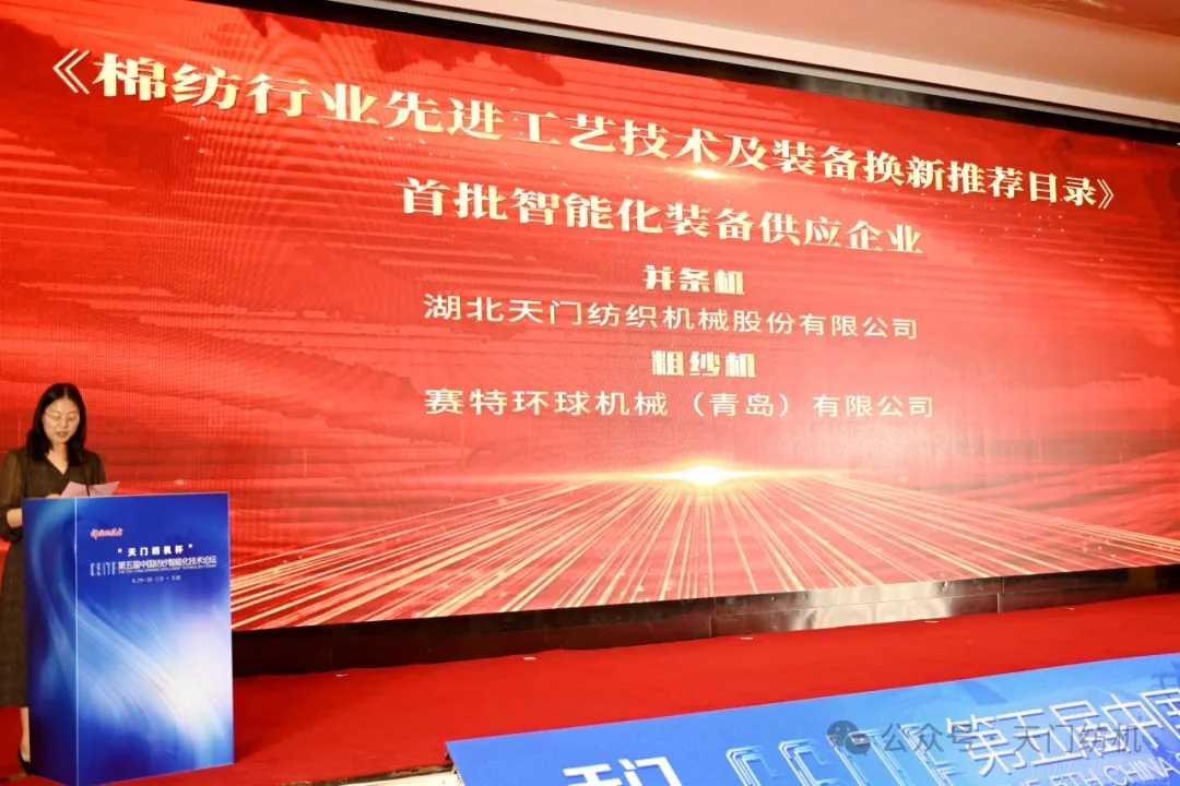天門紡機系列并條機獲得“棉紡行業(yè)先進工藝技術及裝備換新推薦”