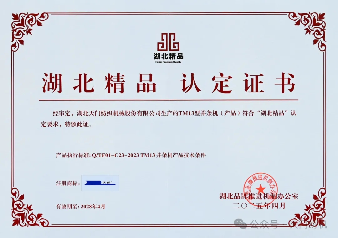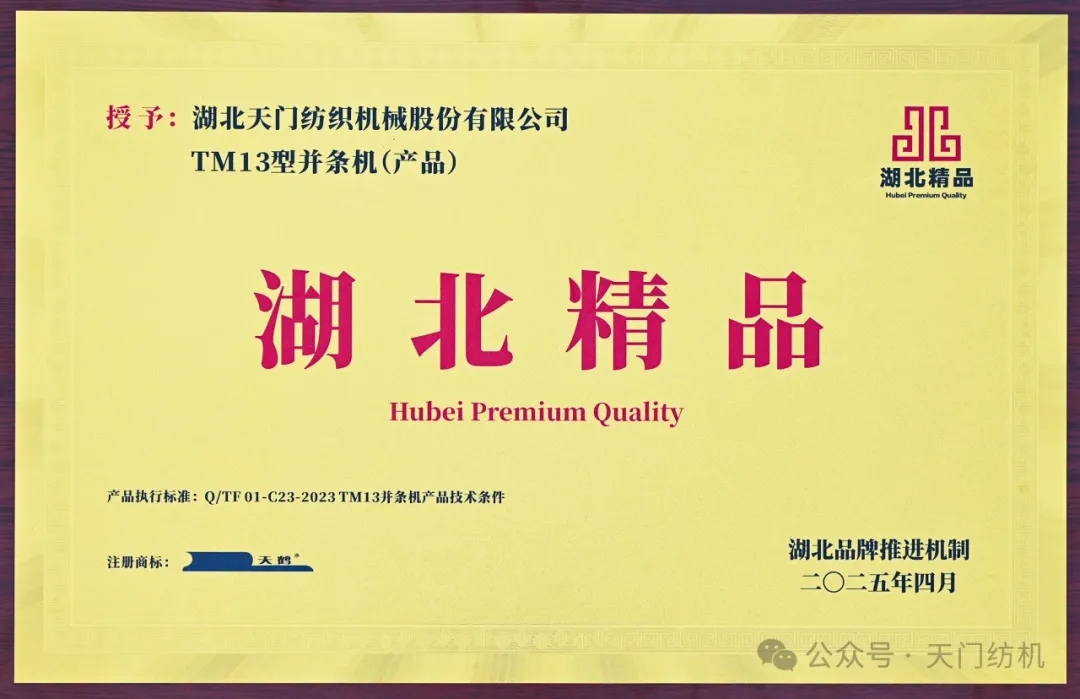 “湖北精品”作為湖北省卓越質(zhì)量品牌的杰出代表,已成為湖北品質(zhì)的圖騰。天門紡機(jī)產(chǎn)品入列“湖北精品”,就是對其匠心與創(chuàng)新精神的高度認(rèn)可。