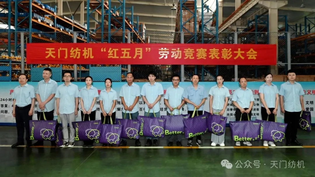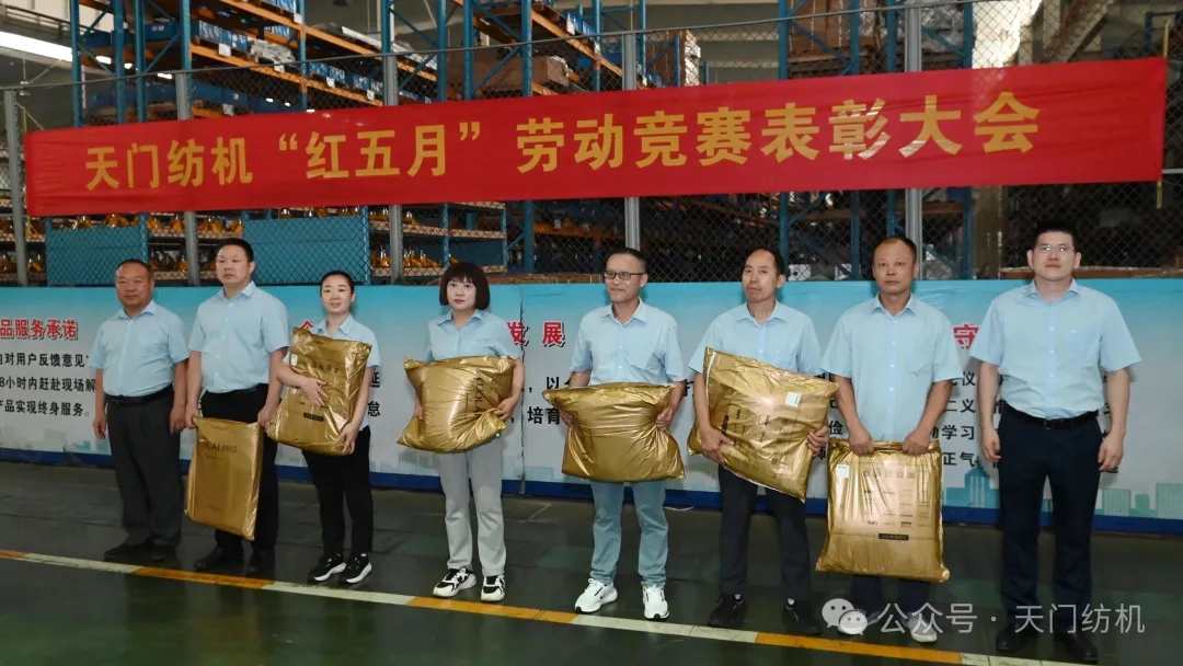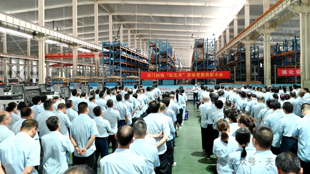 晨光微熹,映照勞動者的身影。2025年6月27日早上8:00,天門紡機全體員工齊聚總裝配區(qū),舉行“紅五月”勞動競賽表彰大會,禮贊拼搏者,致敬奮斗人!